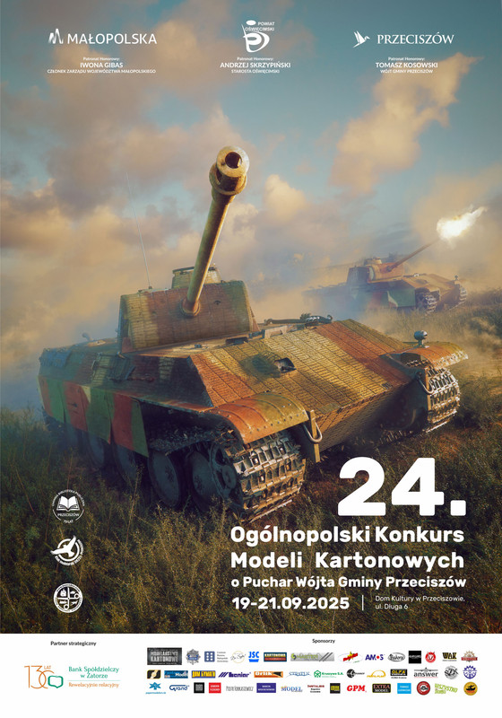 W dniach 19–21 września 2025 roku w Domu Kultury w Przeciszowie odbył się 24. Ogólnopolski Konkurs Modeli Kartonowych o Puchar Wójta Gminy Przeciszów. To wydarzenie od lat przyciąga pasjonatów modelarstwa, a tegoroczna edycja udowodniła, że ta dziedzina sztuki i techniki rozwija się w imponującym tempie. Organizator konkursu – Gmina Przeciszów, Gminna Biblioteka Publiczna w Przeciszowie oraz Klub Modelarski „Orzeł” – przygotowali aż 34 kategorie rywalizacji, co zachęciło do udziału nie tylko modelarzy z całej Polski, ale również gości z Czech, Słowacji, Ukrainy, Litwy, Niemiec, Irlandii i Austrii. Na konkurs przyjechało 242 uczestników, którzy zaprezentowali 654 modele. Jury sklasyfikowało 563 prace, a poziom wykonania – jak podkreślali sędziowie – był wyjątkowo wysoki.